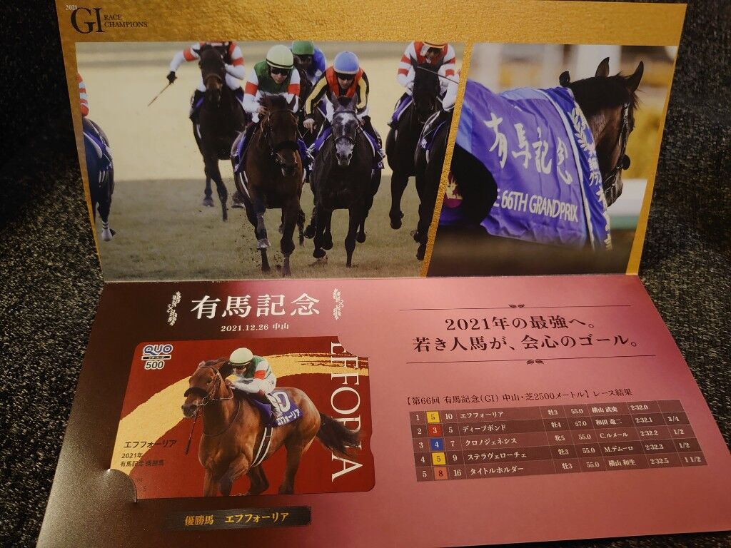 去年の有馬記念のキャンペーンでQUOカード26枚セット当たったわ