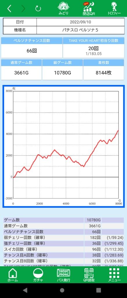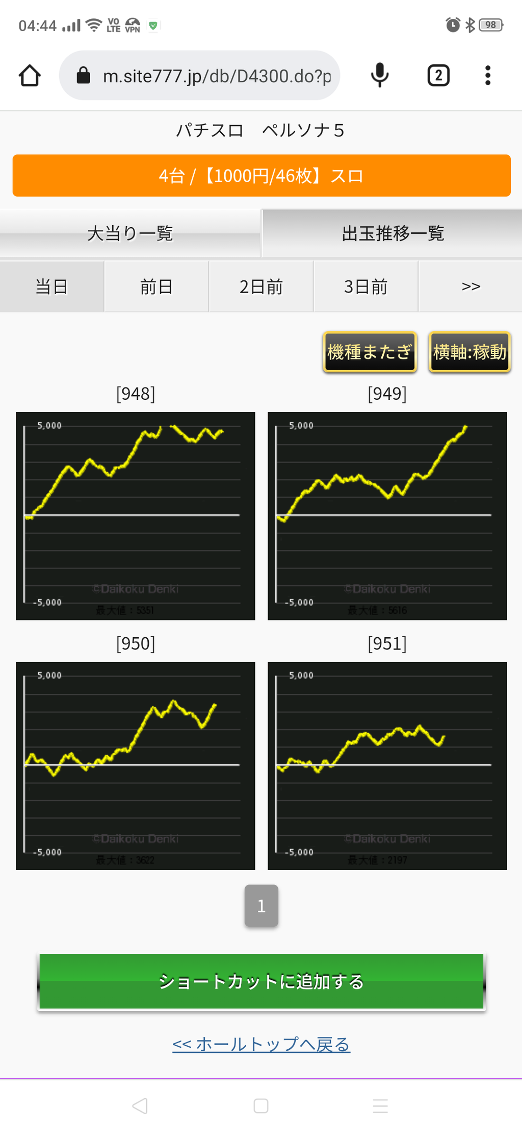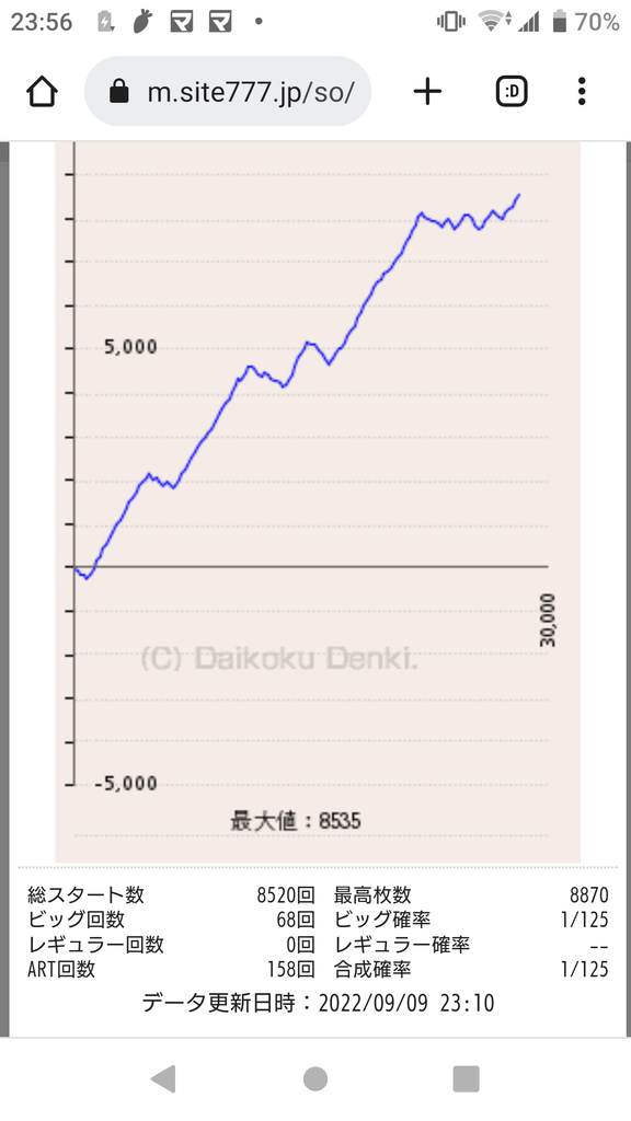 出す道はわかるが、その入り口以外は200枚も行かないのよね。すると軒並み右肩下がりで2000枚以上飲む。入り口まで来ても少し出だし遅れると即終了…