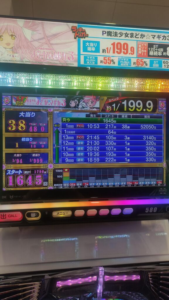 まどマギ3話題の為に初打ちしたんだけど1kで初当たり3回ラッシュ2回LT1回入って単発終了してキレそう