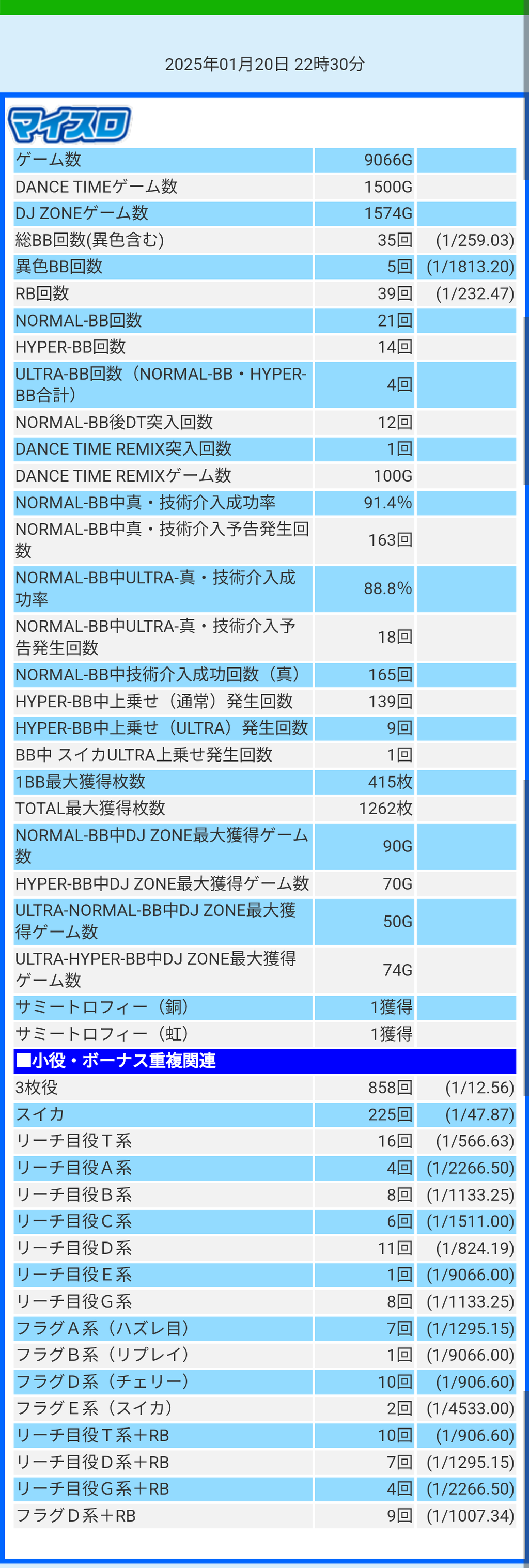 たまたま800枚浮いた所で辞めましたがトータルで6890G BB29RB19です